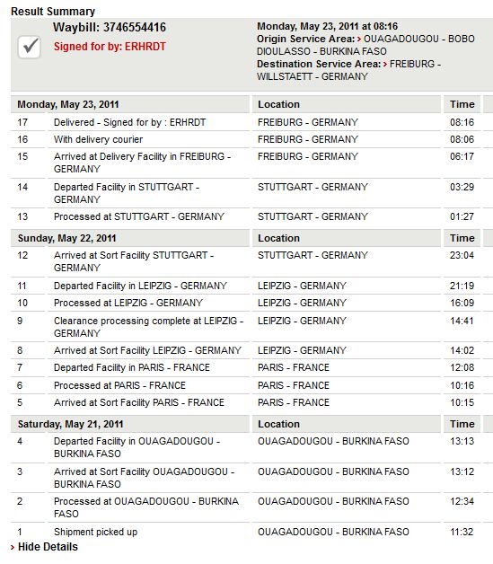longer than shipments with standard couriers like DHL or Fedex (see examples behind the