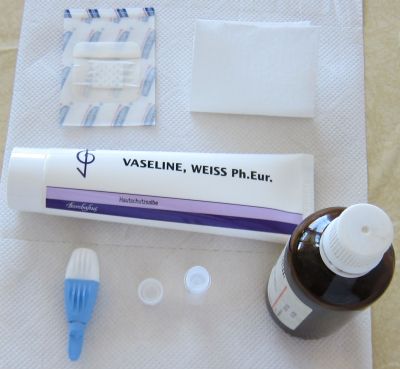 disinfected with alcohol, optionally a thin layer of vaseline or