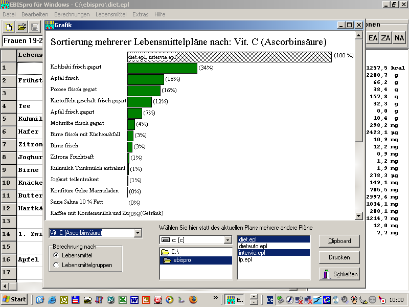 verwendet. Mehrere Pläne können jetzt auch nach Mahlzeiten analysiert