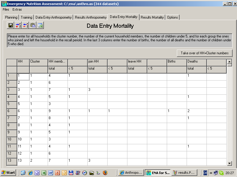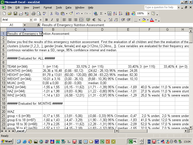 The data can also be easily transfered to Excel and pasted back to ENA.