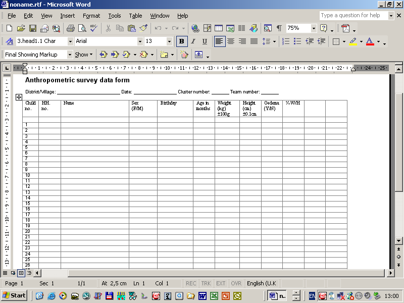 Team, ID and Household No. is filled out automatically. The results (z-score