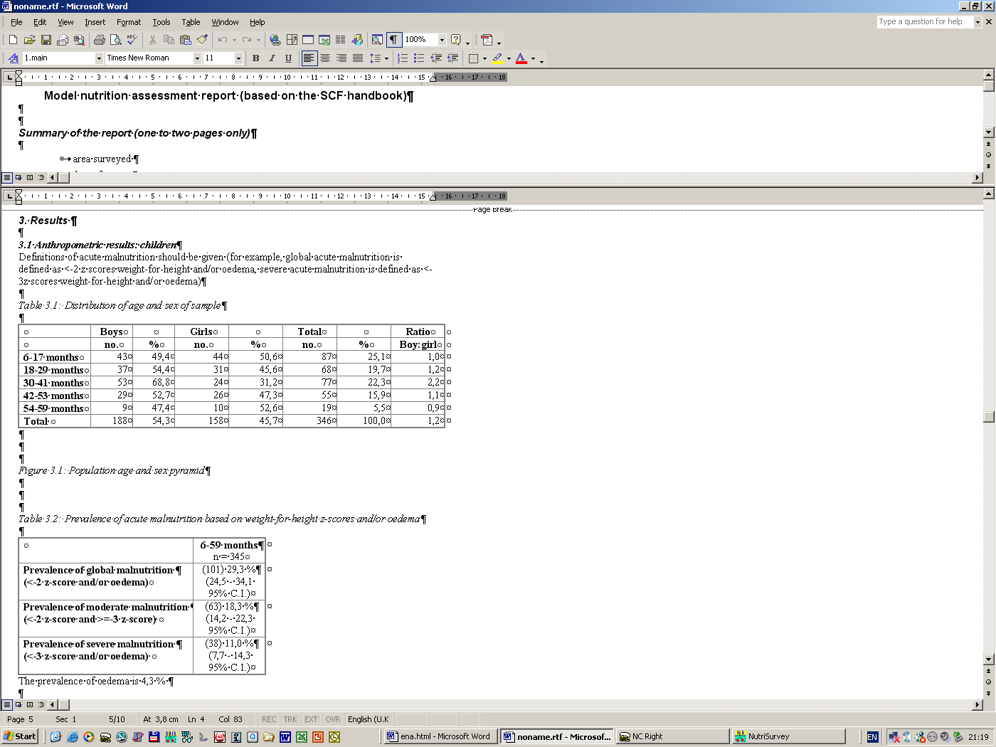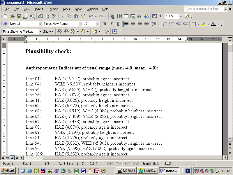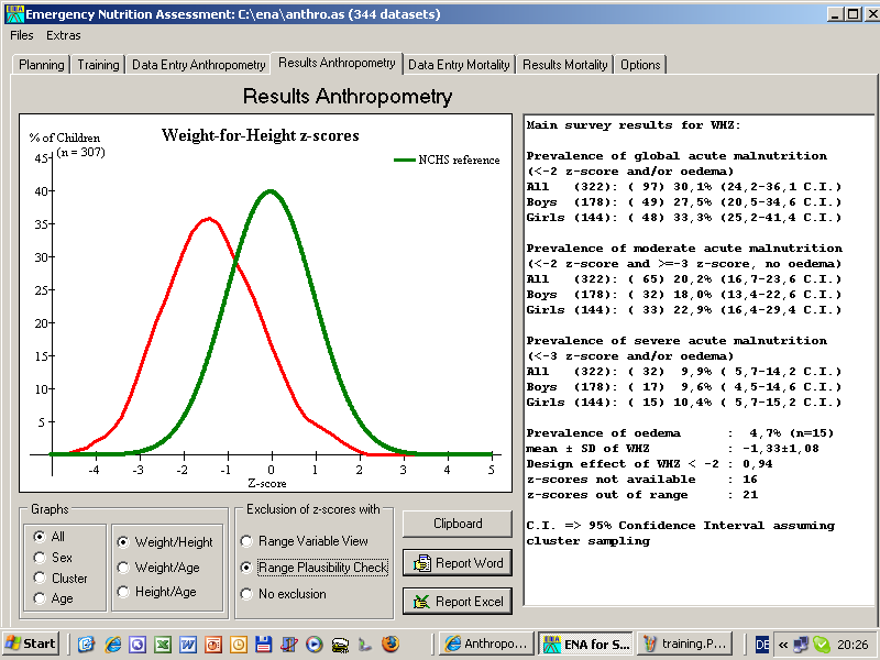 WHO standards is produced. Additionally it is possible to make bar graphs for the