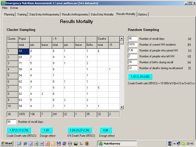 and depending on the settings under 'Options' the Surveydate, Cluster,