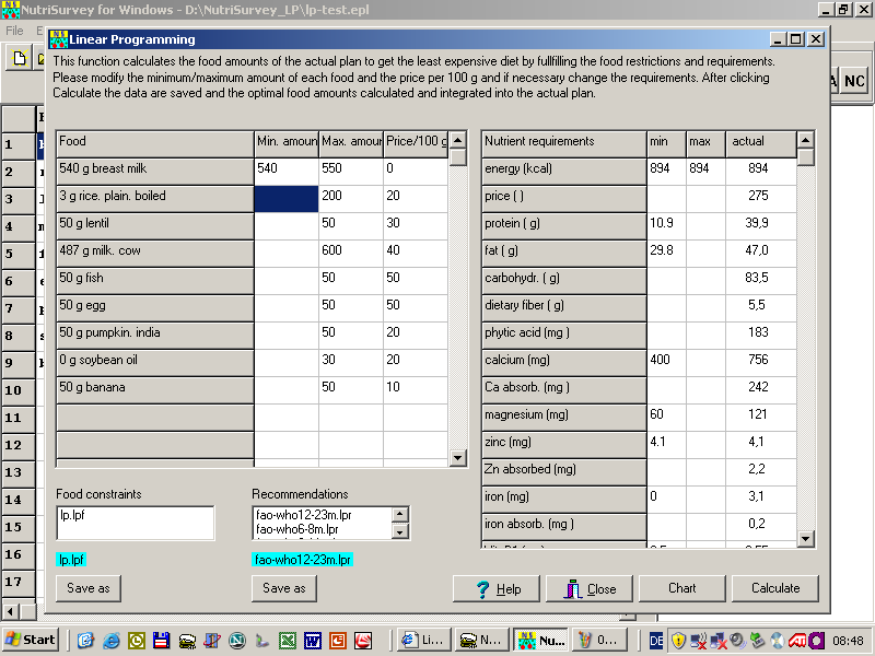 The Linear Programming Module of NutriSurvey is a user-friendly software